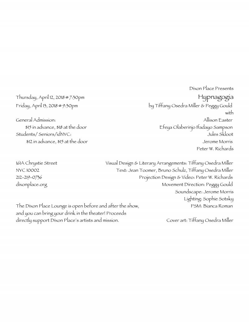 directly support Dixon Place’s artists and mission. Cover art: Tiffany Osedra Miller